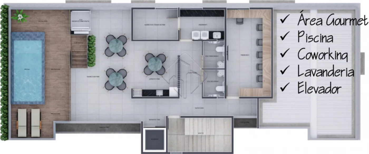 - Prédio com coworking, lavanderia, espaço gourmet e piscina;