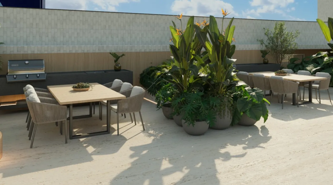 Área de lazer completa no rooftop