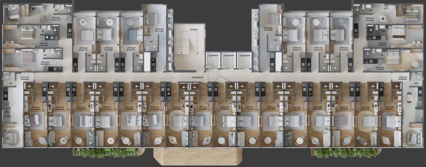 O empreendimento oferece flats de 23 a 30 m², projetados com alto padrão construtivo, conforto térmico e acústico, ideais para moradia ou locação com alta rentabilidade.