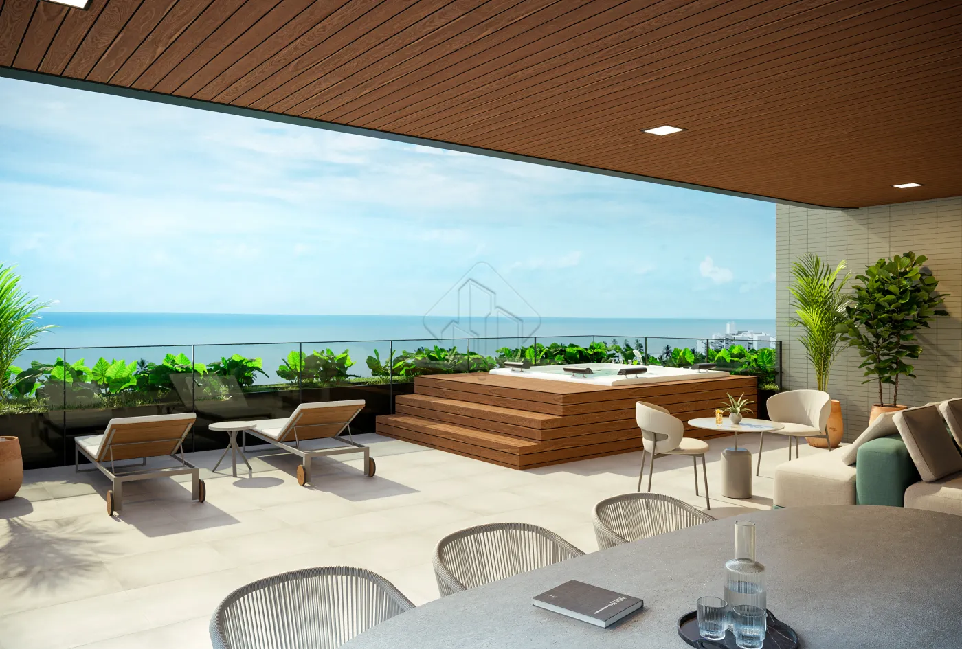 -02 lounges privativos com hidromassagem e vista para o mar.