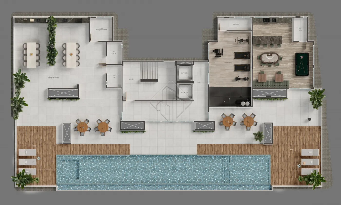 O condomínio oferece uma área de lazer completa, ideal para momentos de descanso e convivência, incluindo piscina, espaço gourmet, lavanderia, academia, áreas de convivência, além de ambientes planejados para bem-estar e lazer.