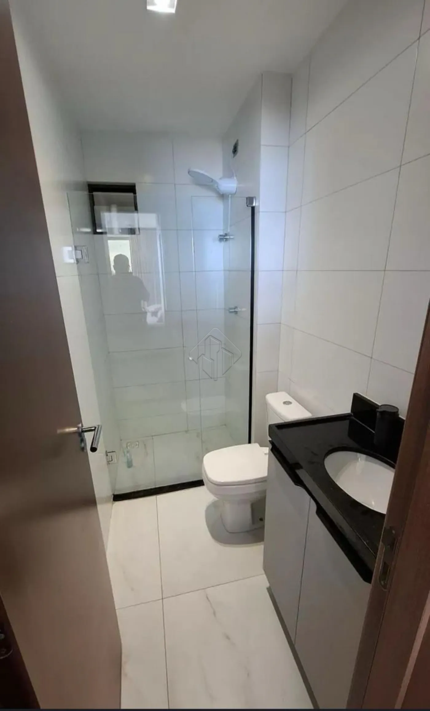 Banheiro com box e cortina blackout de tecido