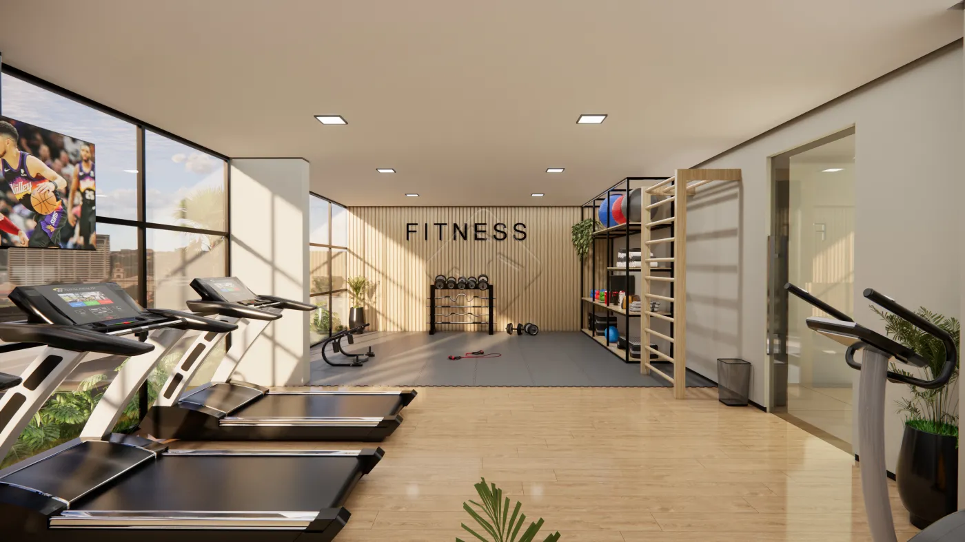 -Para os pais: Mantenha o pique em um ampla Academia com vista inspiradora;