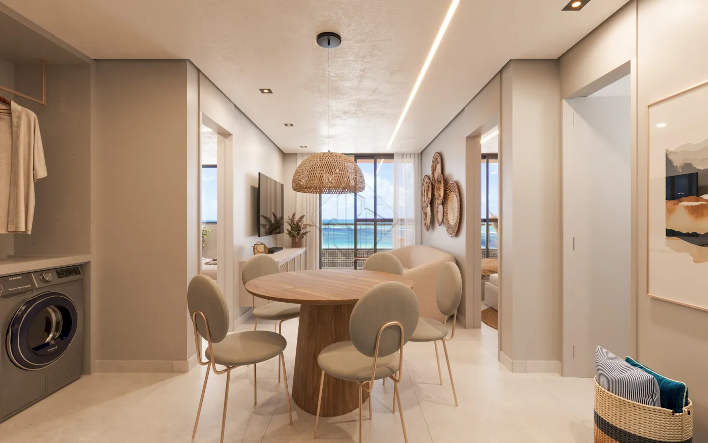 As unidades contam com sala integrada, cozinha funcional, área de serviço e banheiro social, com ambientes bem distribuídos e ótima iluminação natural, proporcionando conforto no dia a dia.