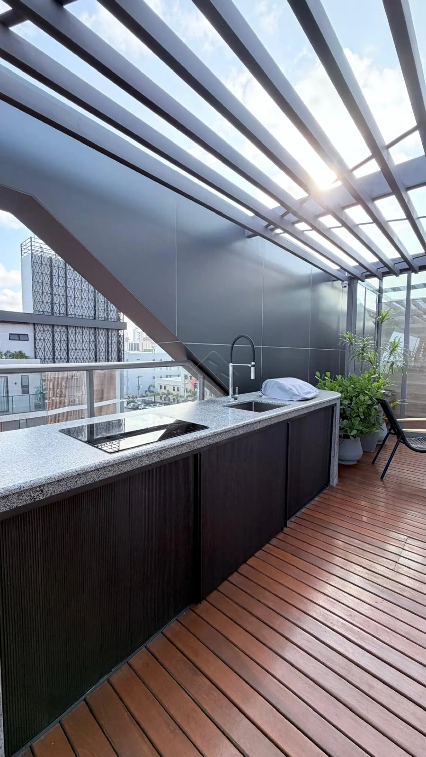 Duas áreas gourmet no rooftop com vista cinematográfica