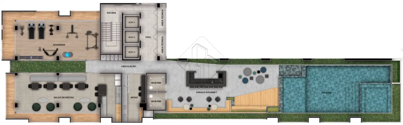 O condominio dispoe de area de lazer completa, perfeita para momentos de descanso e convivencia, incluindo piscina, espaco gourmet, academia e areas comuns cuidadosamente planejadas.