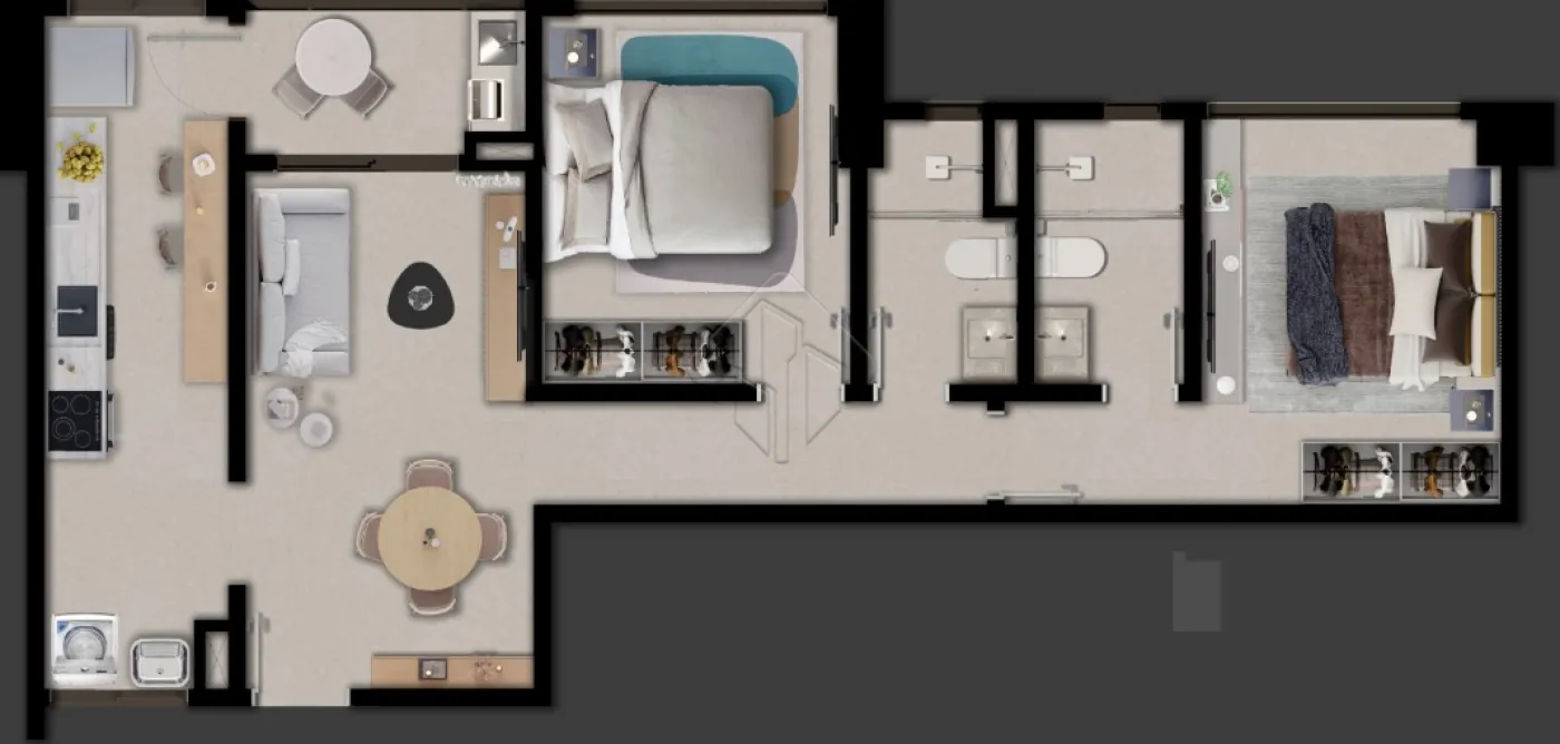 Os apartamentos contam com 2 ou 3 quartos, com 1 suite, proporcionando privacidade e comodidade para toda a familia. As unidades oferecem sala para dois ambientes com varanda, integrando estar e jantar de forma harmoniosa, alem de cozinha funcional, area de servico e banheiro social, com plantas inteligentes que valorizam cada espaco.