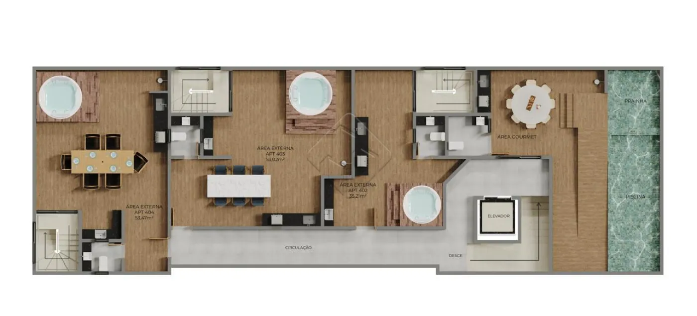Apartamento com térreo exclusivo, área externa e piscina privativa, ideal para quem busca conforto e lazer sem sair de casa.