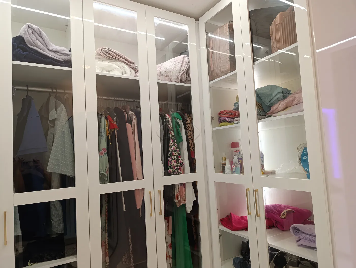 -Armários planejados na cozinha, área de serviço e guarda-roupa no closet.