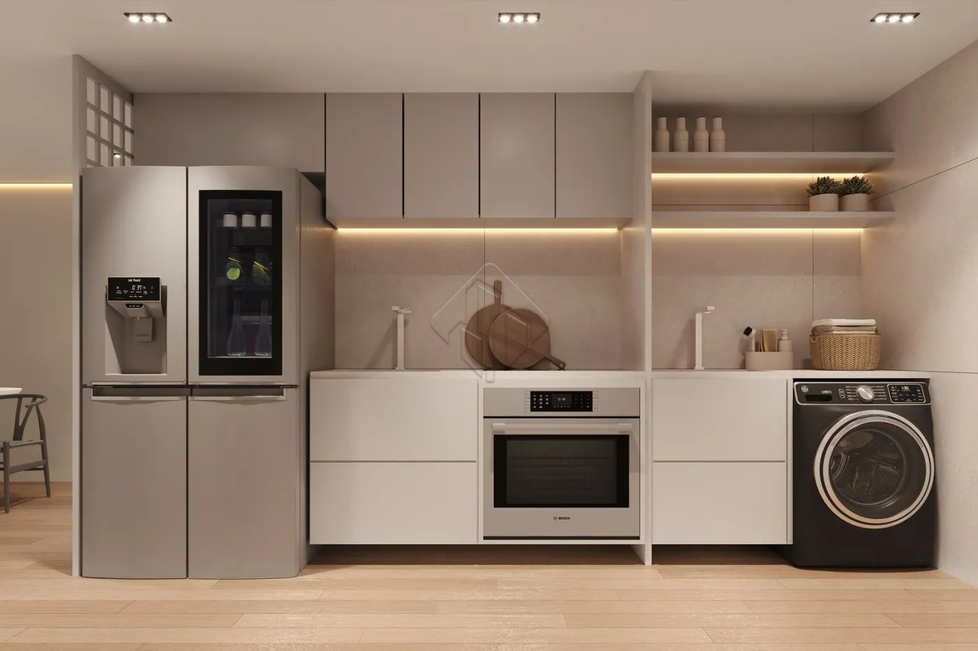 A cozinha possui ótimo espaço e integração prática com a área de serviço, facilitando a rotina do dia a dia. O imóvel conta ainda com banheiro social, garantindo mais comodidade para moradores e visitas.