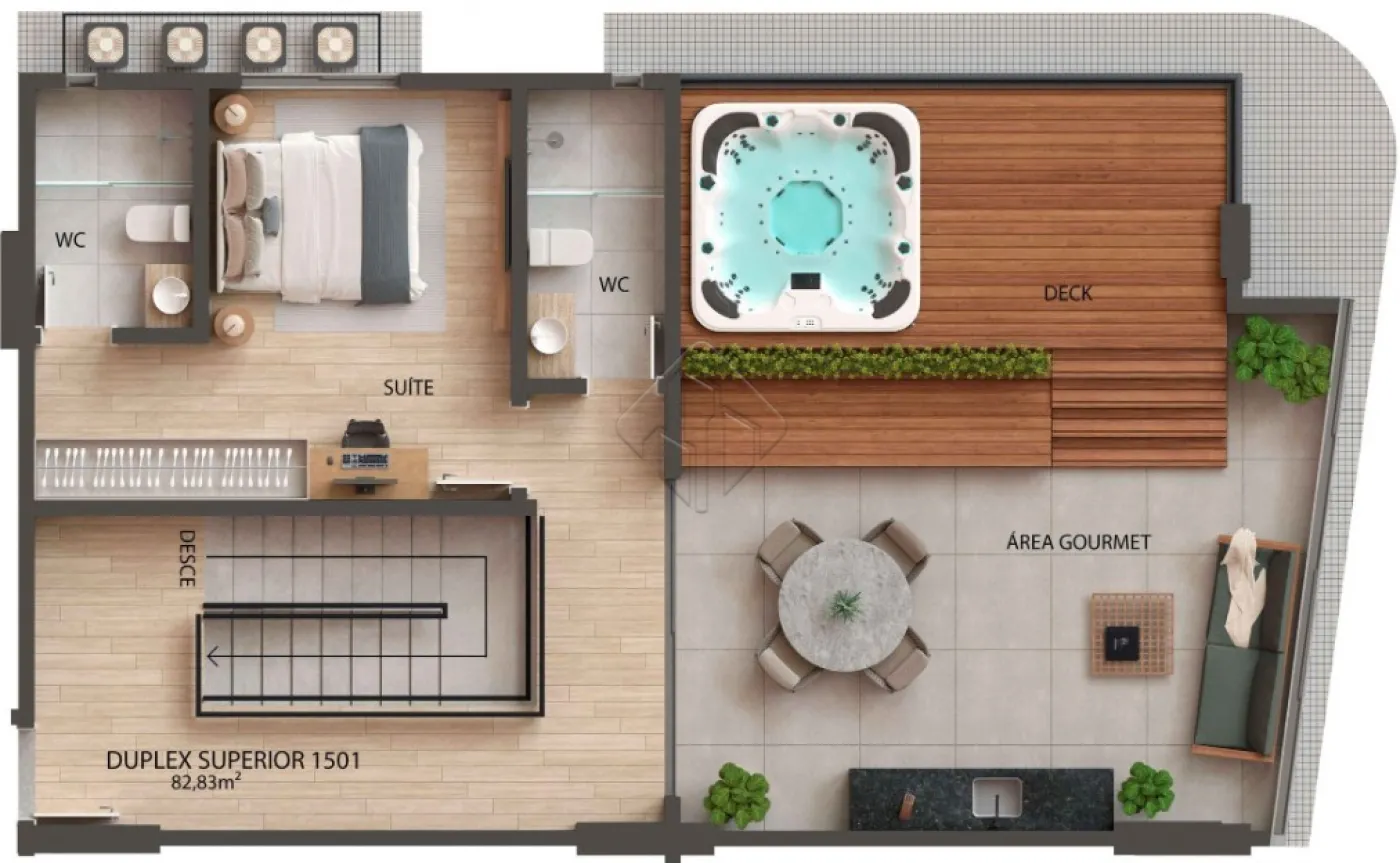 - Cobertura duplex com área externa gourmet privativa com hidro;