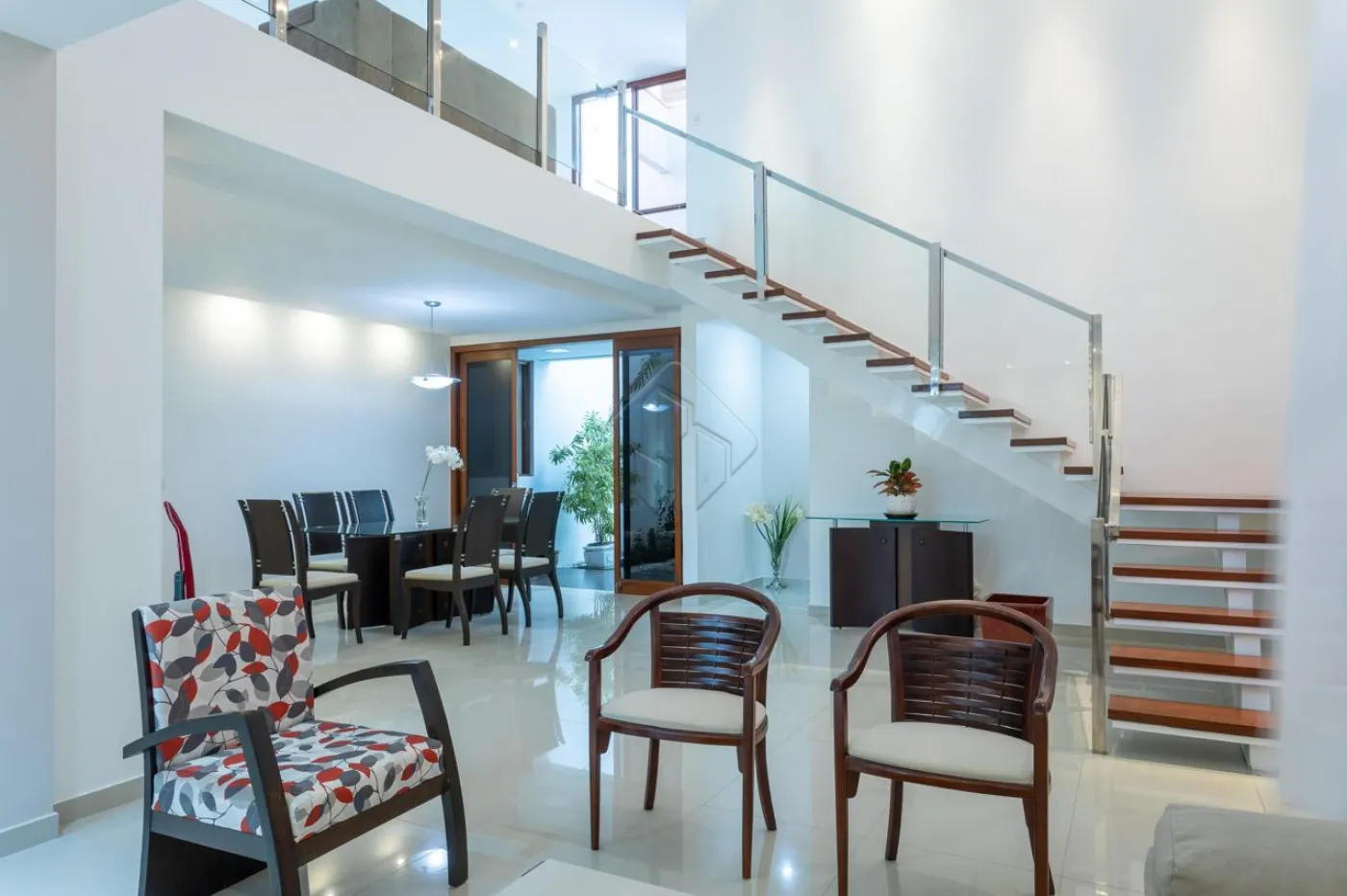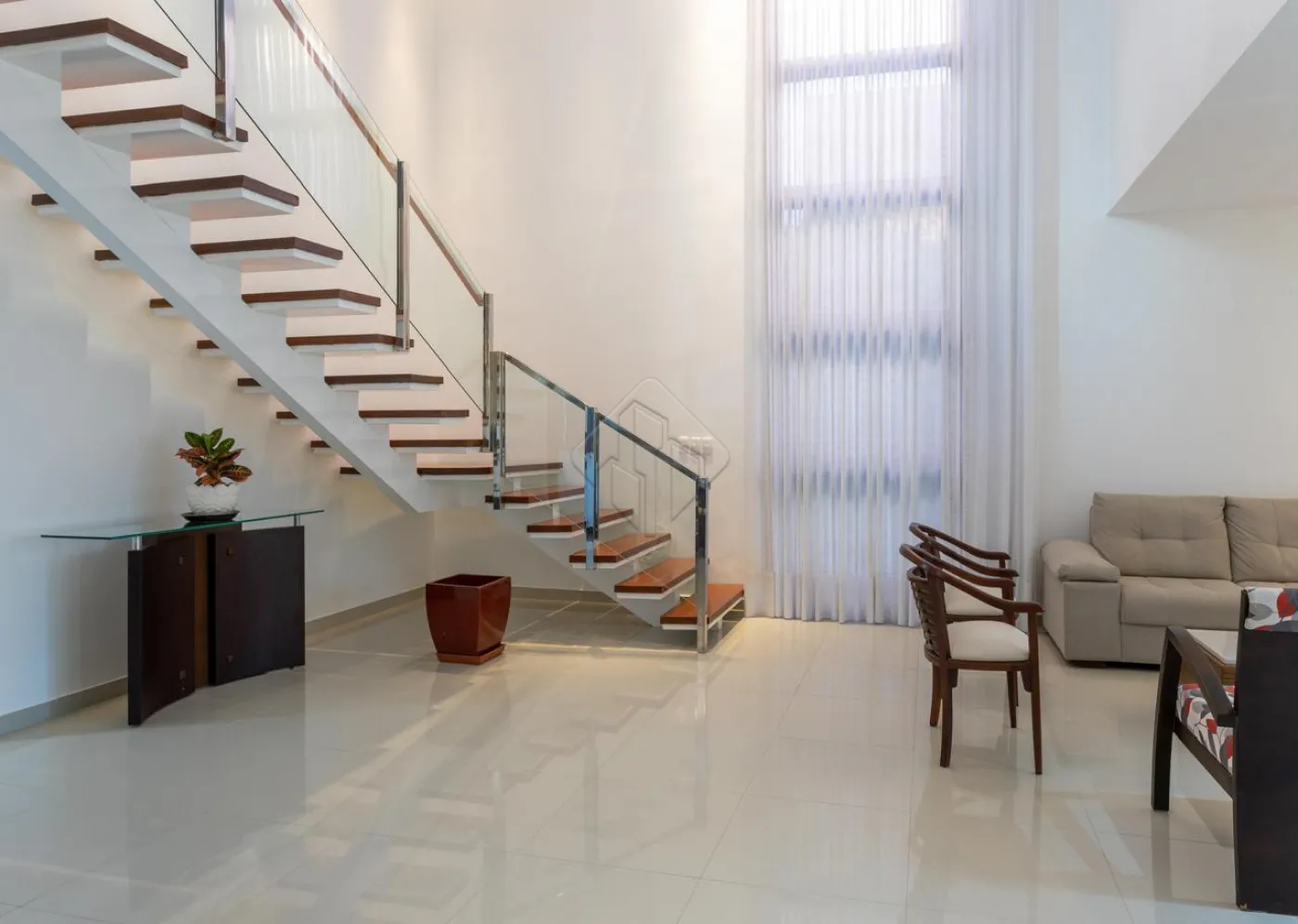 - Escadaria imponente com acabamento em madeira