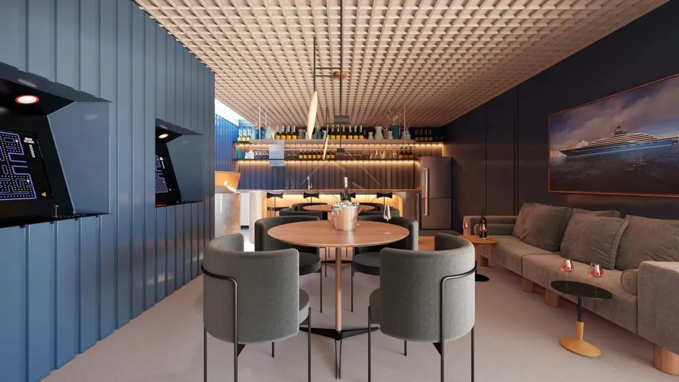 Para ler um bom livro ou tomar um bom Champanhe, aqui você terá o melhor ambiente. Haverá espaços comuns desde o subsolo até a majestosa cobertura de frente para o mar.